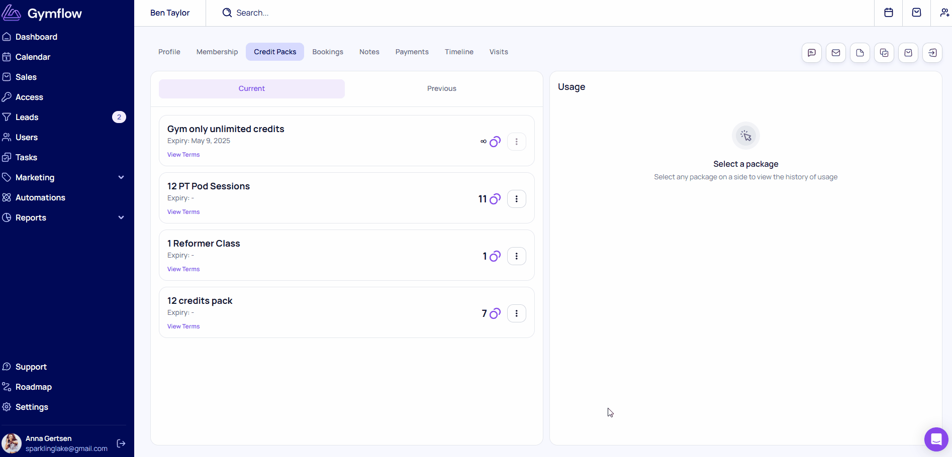 Please note that you can only reactivate standalone credit packs. If the action button on the right-hand side of the pack is greyed out, it means this pack is part of a membership and cannot be reactivated.