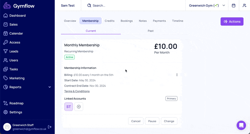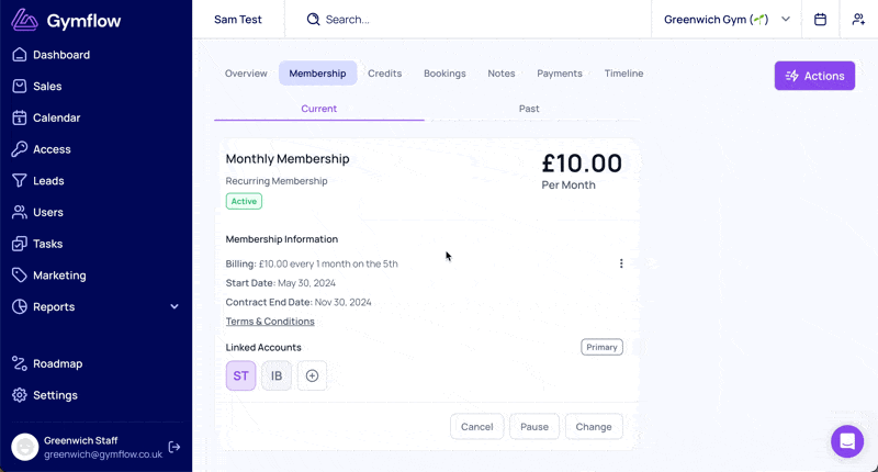 Note: Shared memberships are automatically detached if the primary membership is cancelled, or changed to another membership.